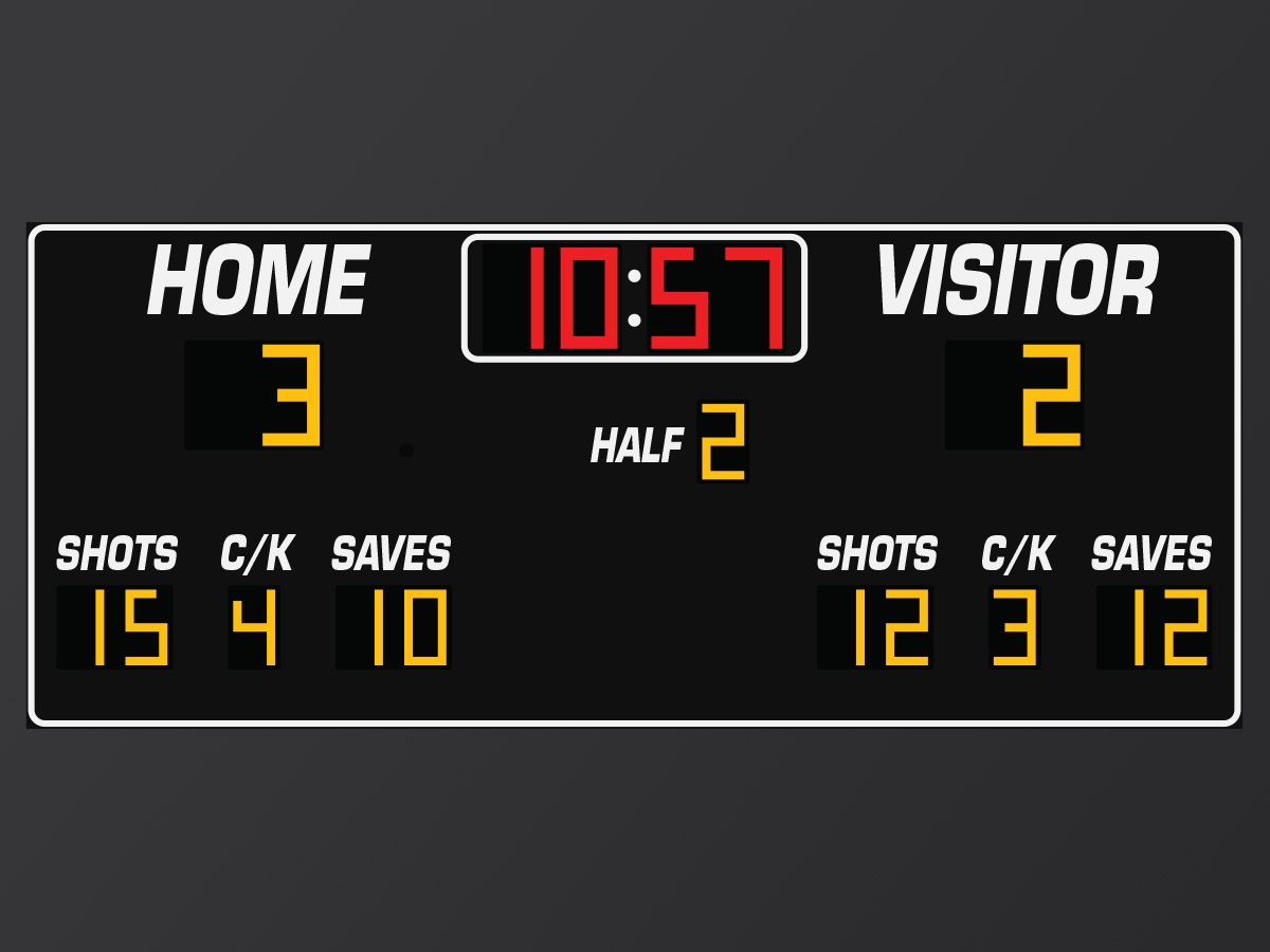 - Choose to display score, saves, shots on goals, and corner kicks.