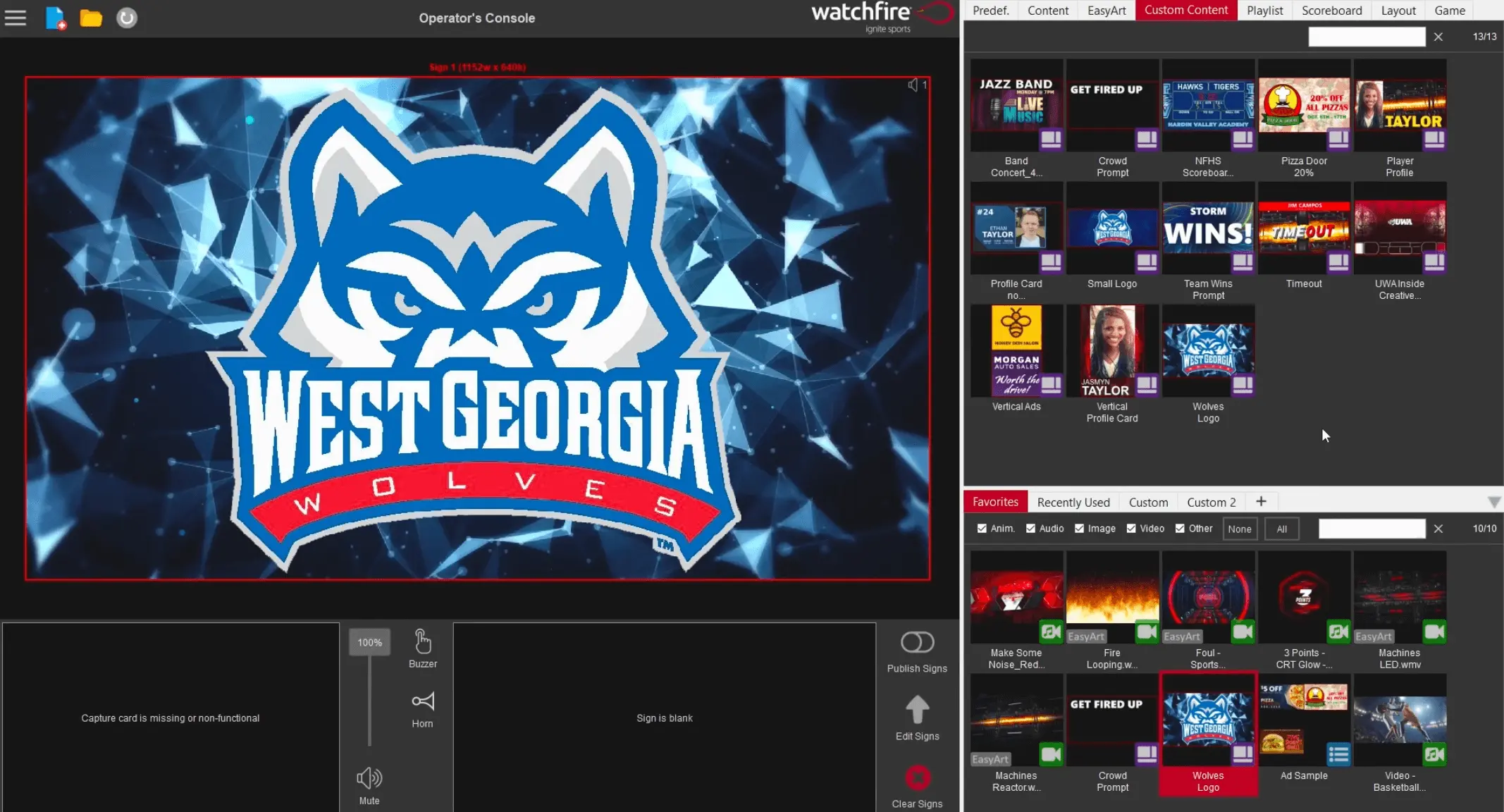 Dynamic Content Management: Upload videos and images, create custom content with our built-in editor, or choose from Watchfire’s EasyArt library to keep the crowd energized.