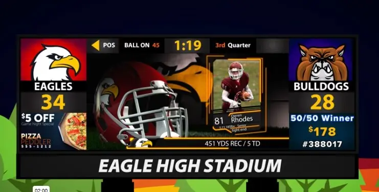 Live Video: Integrate live video feeds into your displays to enhance the viewing experience and keep fans engaged.