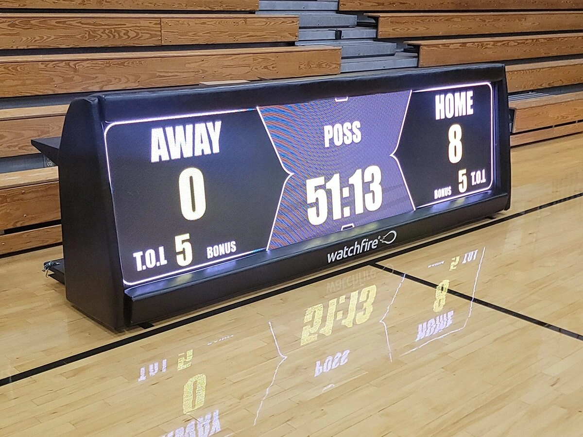 Fans sitting in the gym and fans streaming from home have front-row seats to the messages displayed on video scoring table from Watchfire. These courtside tables turn functionality into high-energy and profitable messaging.